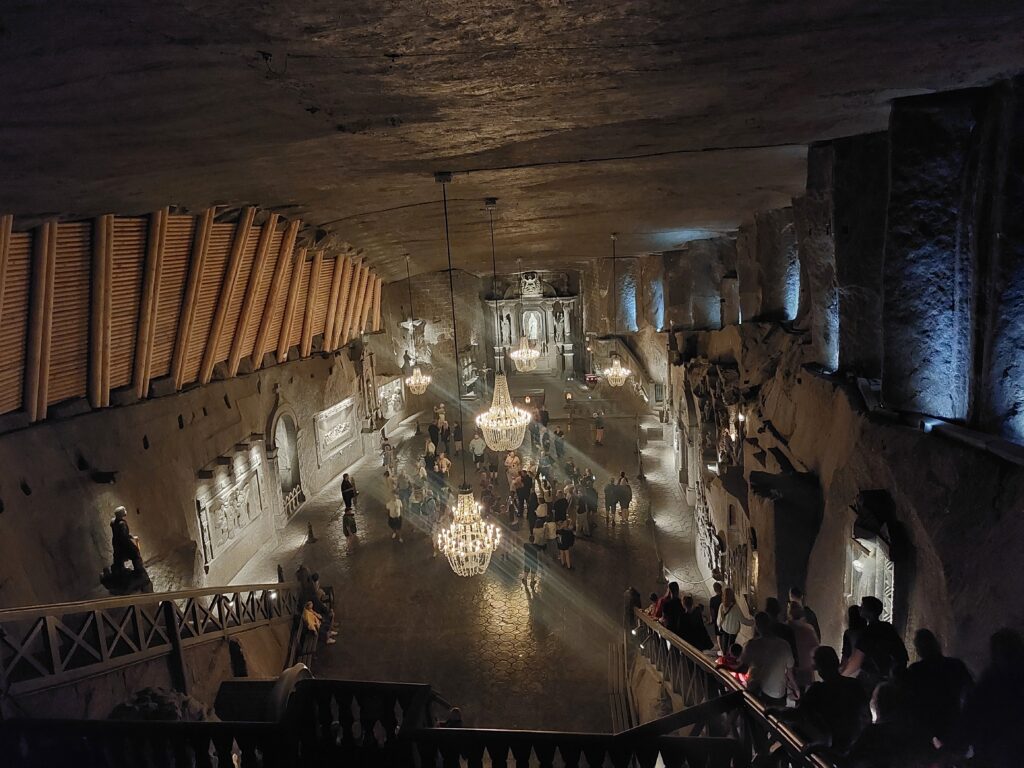 Stone sculpture at the entrance of Wieliczka Salt Mine in Poland, a UNESCO World Heritage Site.